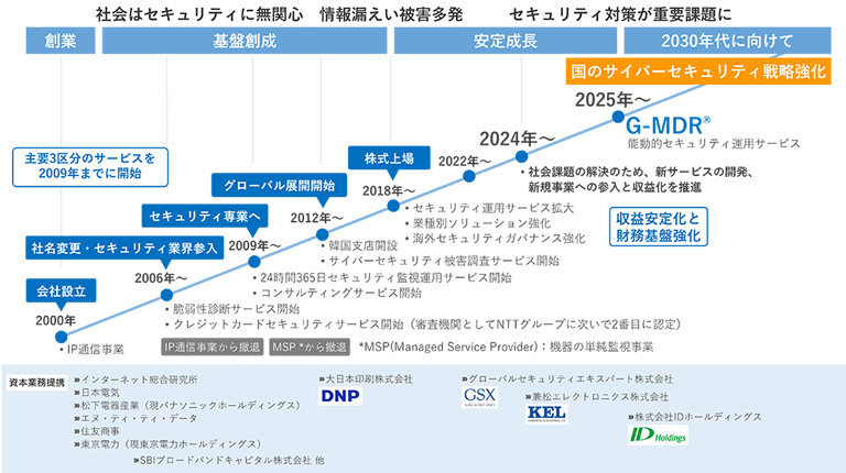 当社は2000年の創業時、IP通信事業からスタートし、2006年の社名変更を機にセキュリティ分野へ本格参入いたしました。2009年までには脆弱性診断、監査、コンサルティングといった主要サービスを立ち上げ、セキュリティ専業企業としての基盤を整備してまいりました。