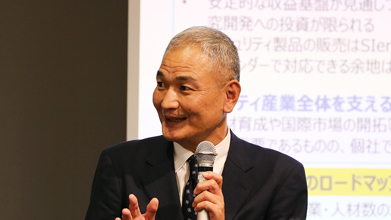 当日は各社の事業説明に加え、経済評論家の馬渕磨理子様の基調講演、また馬渕様の司会によるセキュリティ企業4社社長によるセキュリティ業界の展望や最新の脅威・課題をテーマにしたパネルディスカッションが行われました。