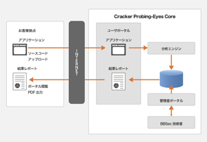ソースコード自動診断 -Cracker Probing-Eyes® Core- アプリケーションのソースコードをアップロードするだけで、ソースコードの脆弱性と 品質の診断を行えるSaaS型品質分析自動ツールです。 |