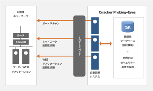 デイリー自動脆弱性診断 -Cracker Probing-Eyes®- インターネット越しにお客様サイトの脆弱性をチェックする、自動診断ツールです。 |